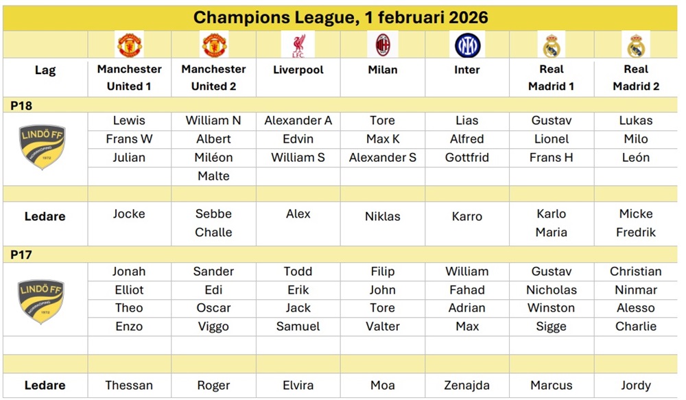 Information och lagindelning Champions League 1/2